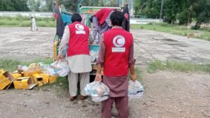 The team is distributing cooked food, clean drinking water, and grams (channa) to families in need. PRCS Punjab reaffirmed its commitment to stand with the affected communities and ensure timely support during this crisis.