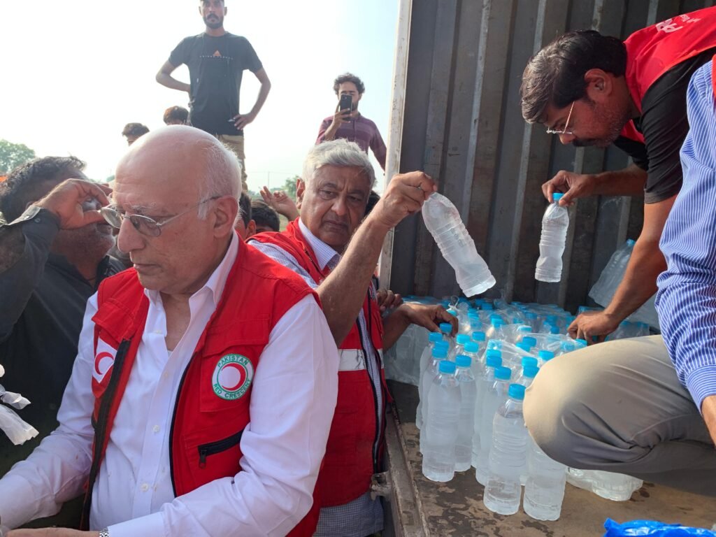 The Pakistan Red Crescent Society (PRCS) extended its relief operations to flood-affected areas of Tehsil Jhang, distributing essential food and water supplies to the impacted communities.
