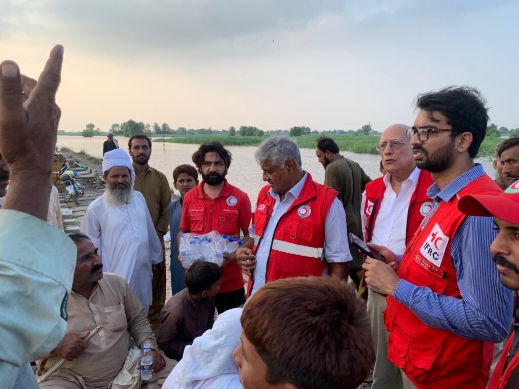 PRCS MC Member Mian Azhar Bashir and Secretary General Mr. Mehboob Qadir Shah visited the affected villages, including Ada Shabeera Abad, Sultan Pur, Balo Shahabal Bypass, Khoo Nayan Wala, and Basti Nankana. During the visit, they personally oversaw the distribution of 1,000 hot meals and 1,000 water bottles among flood-hit families and visited the relief camp to review ongoing humanitarian activities.
