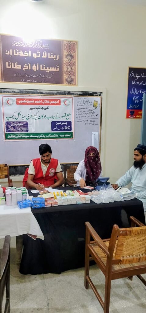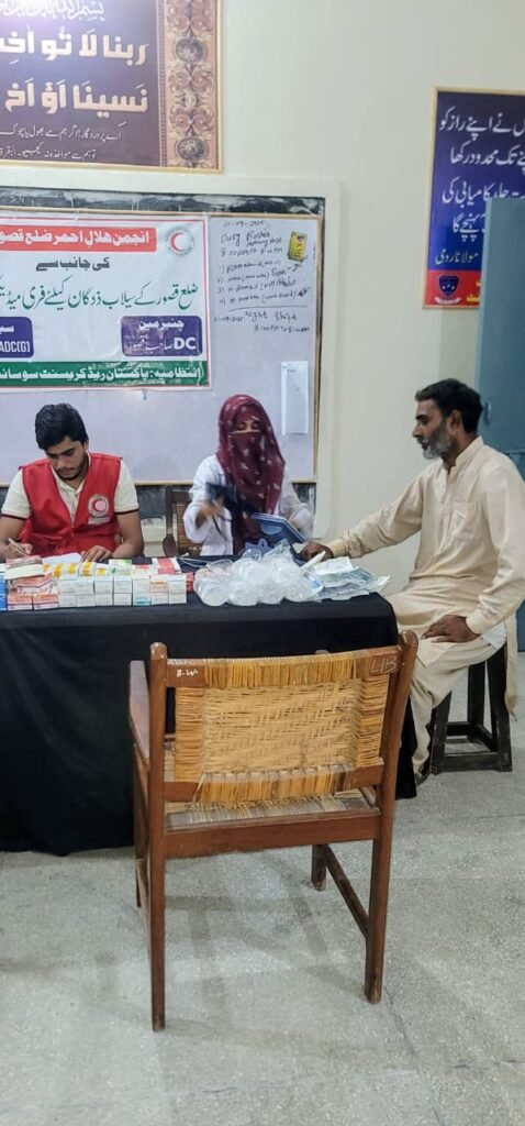 Mandi Bahauddin, September 1, 2025 – Dr. Muhammad Iftikhar, District Health Officer (PS) and Honorary Secretary of District Red Crescent Branch (DRCB) Mandi Bahauddin, organized a Flood Relief Medical Camp at Village Rato Bahri, UC Kala Shadian, Tehsil Phalia, District Mandi Bahauddin.