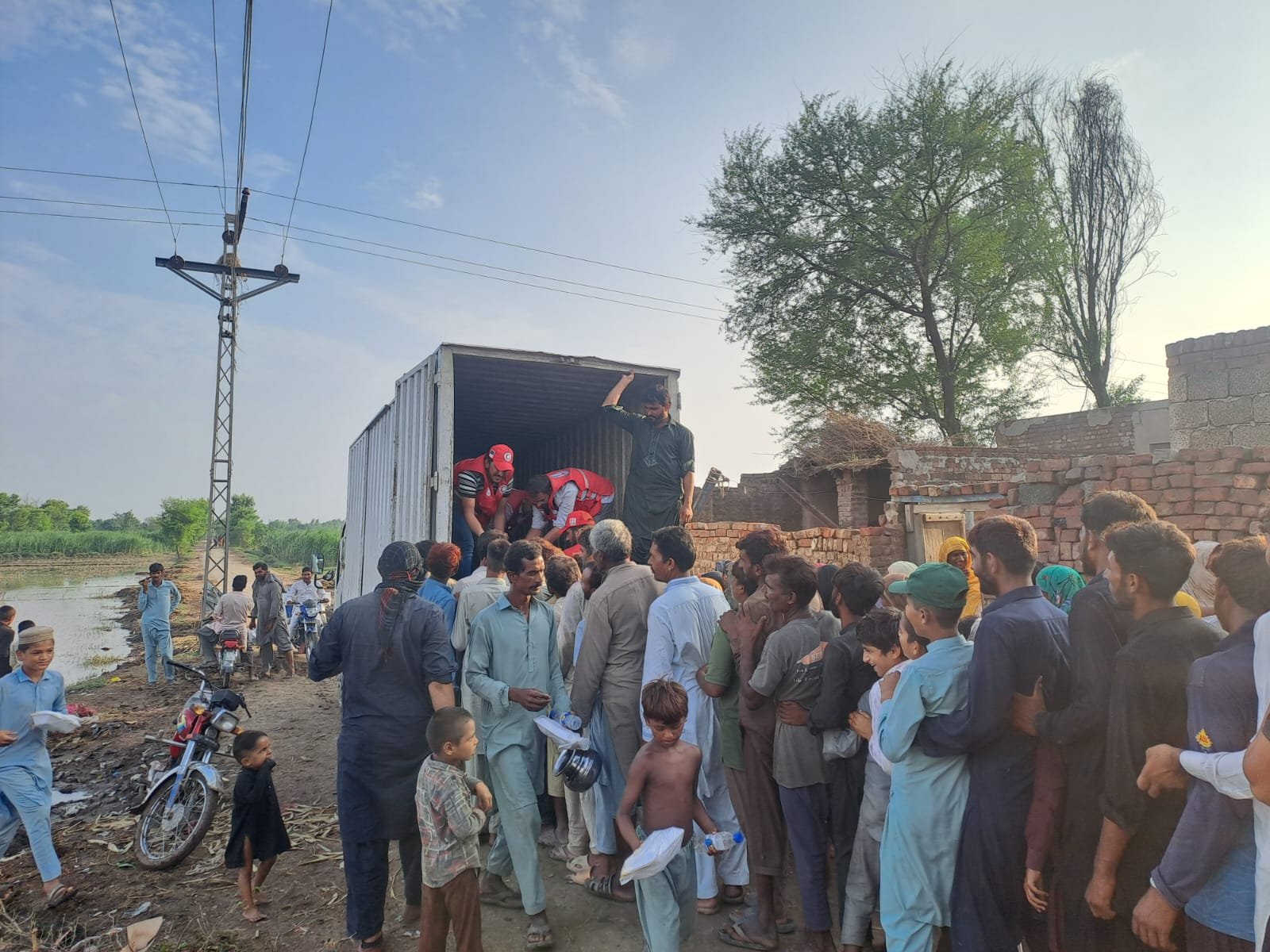 Pakistan Red Crescent Society (PRCS) Punjab carried out a large-scale relief activity in District Chiniot (Tehsils Chiniot and Bhowana) by distributing 2,000 hot meal packs and water bottles among flood-affected families.