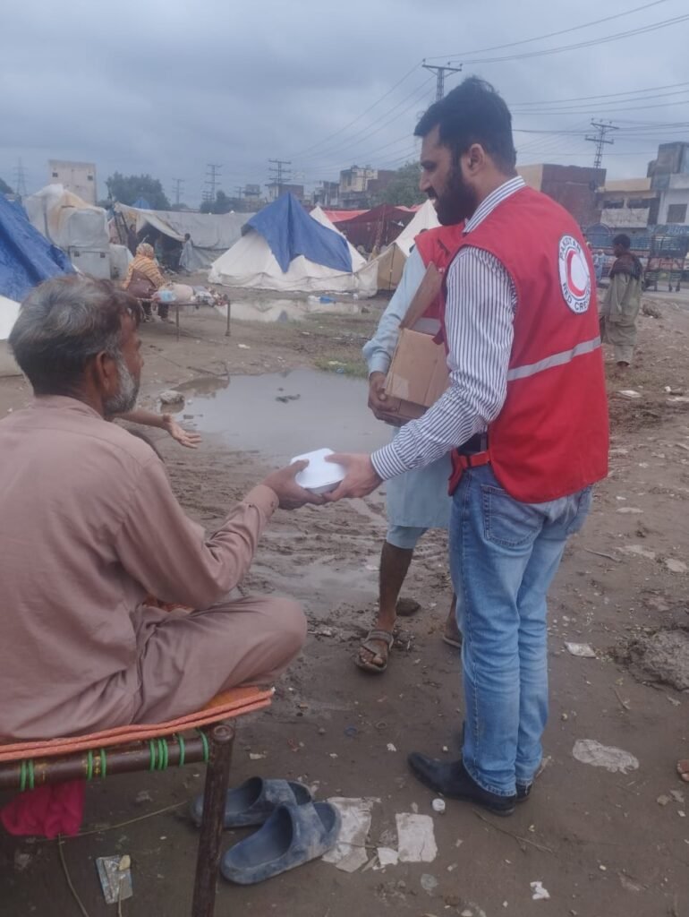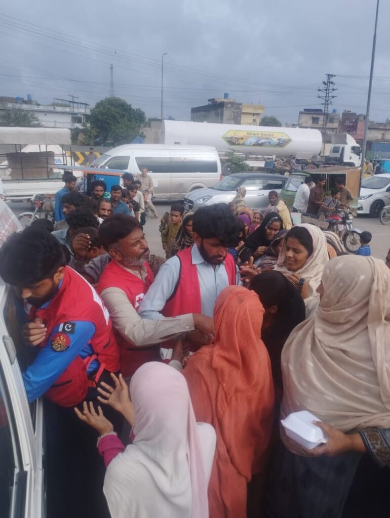 Pakistan Red Crescent Society (PRCS) Punjab continued its relief efforts in Lahore by distributing 150 hot meal packs among families affected by flooding in the Ravi River area. The activity was carried out at Babu Sabu Motorway Interchange between 2:30 PM and 6:30 PM.