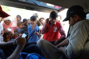 Activity: Evacuation of People & Distribution of Hot Meal Packs, Water Bottles, and Bananas for Children