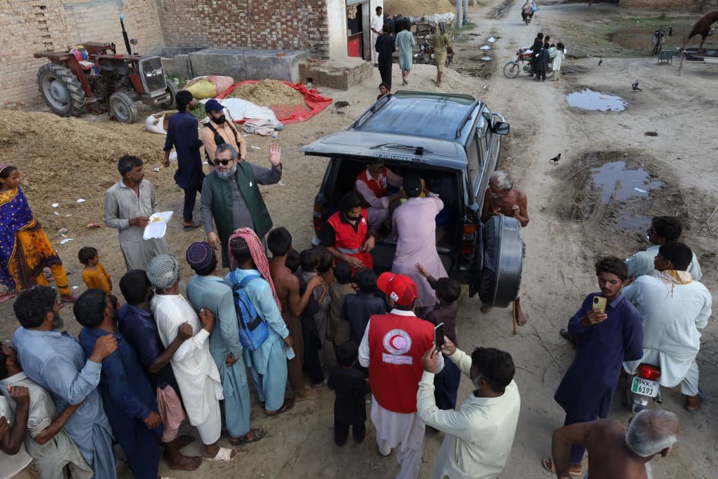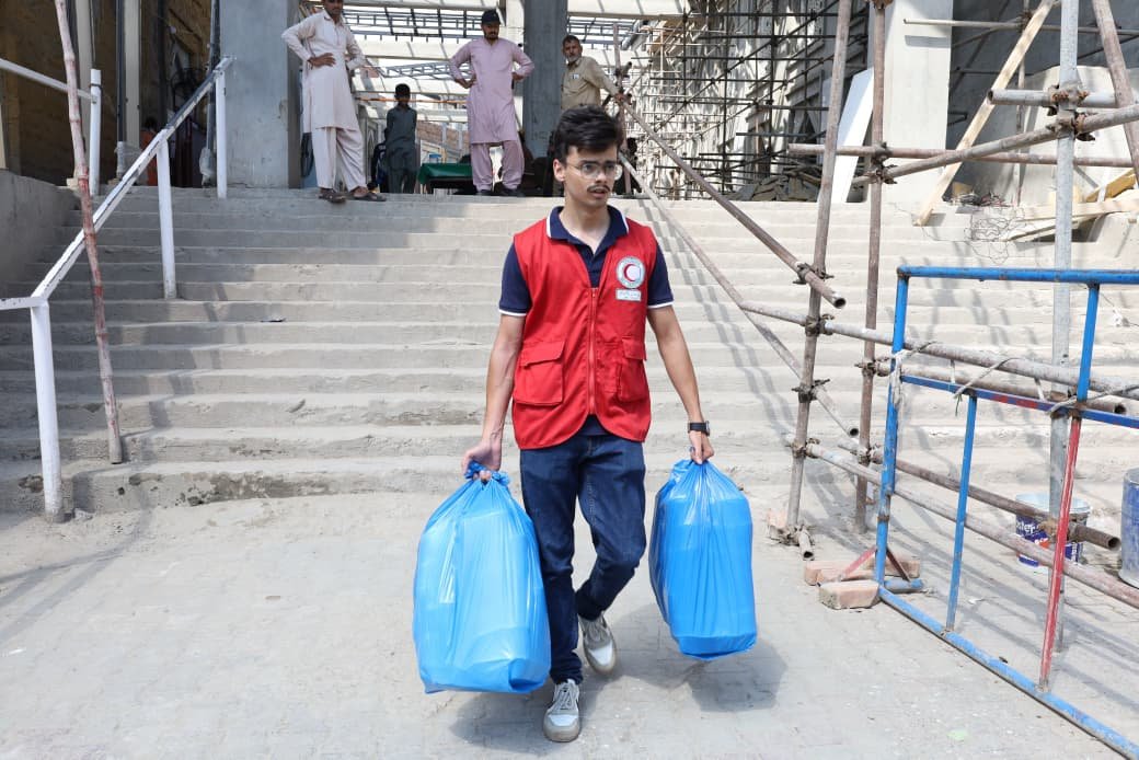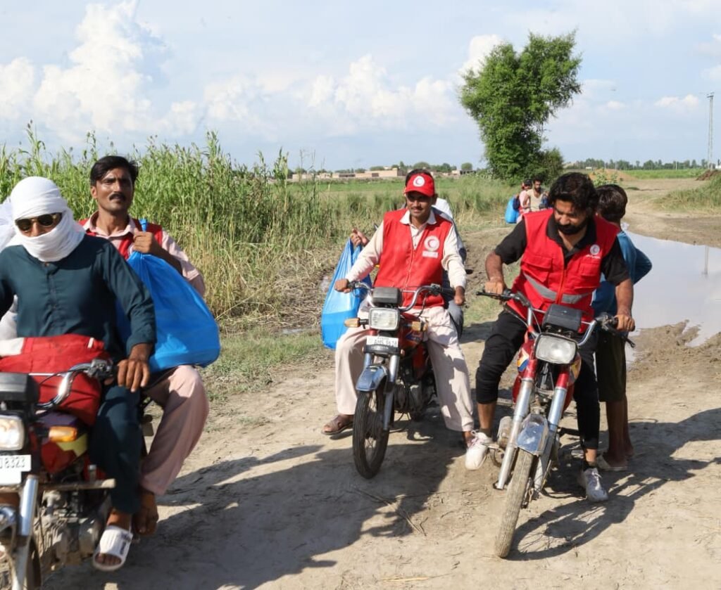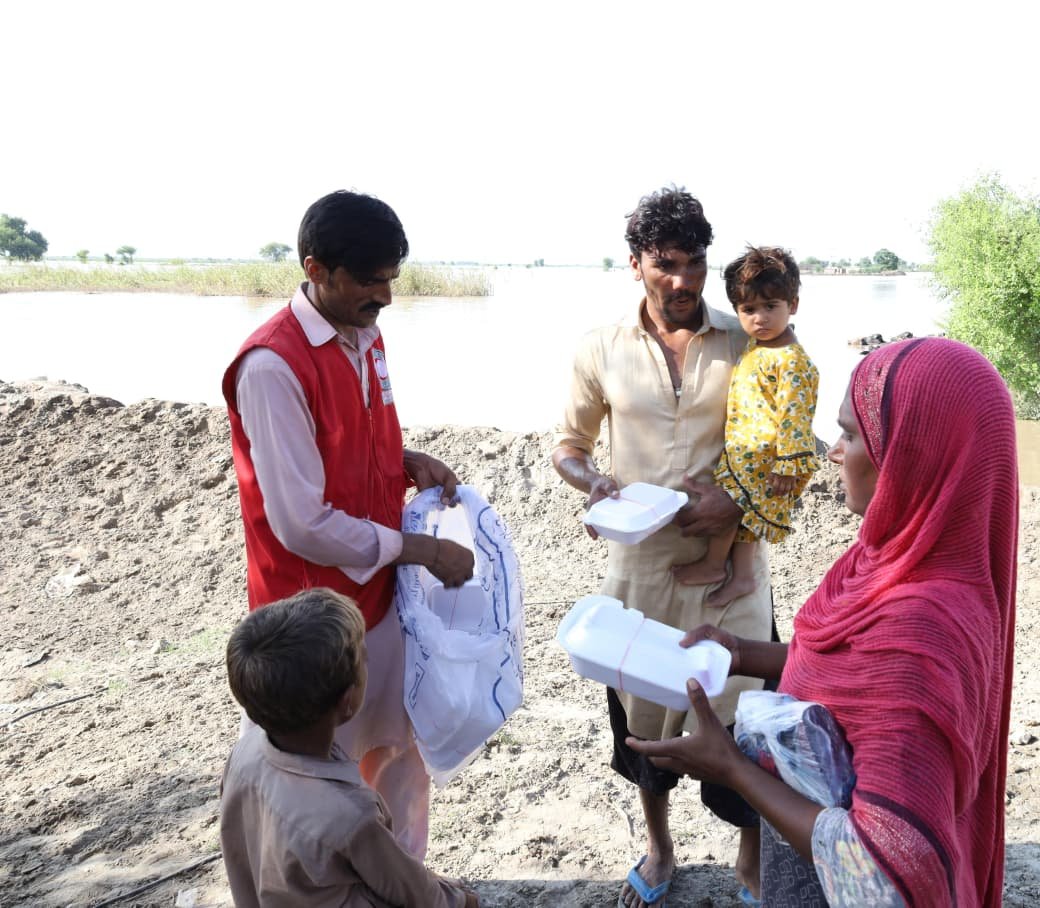 The PRCS Punjab team organized the distribution of 1,000 fresh hot meal packs along with 1,000 water bottles among flood-affected families. The relief support was carried out at the designated locations, including the flood relief camp at Chan Peer Darbar and surrounding flood-affected abadis.